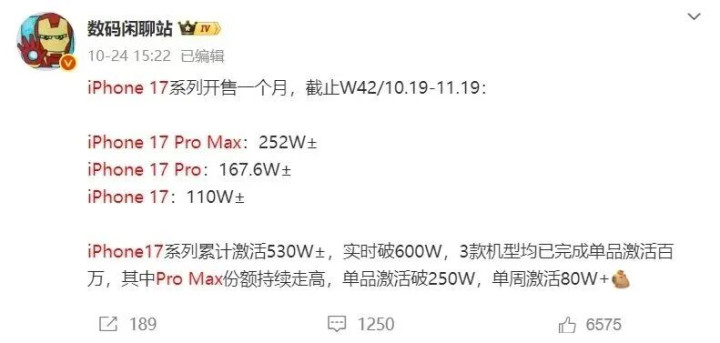 讽刺的是,尽管“离谱”新闻一波接一波,iPhone 17 Pro Max销量依旧爆棚。数据显示,上市首月激活量达530万台,其中Pro Max一款就占了47.3%,稳居榜首。有人调侃:“这可能是历史上销量最好的柔性屏手机——虽然它不是。”